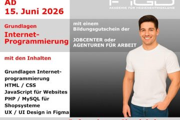 Wer sich beruflich neu orientieren und in einem zukunftsstarken IT-Bereich Fuß fassen möchte, findet mit der Weiterbildung Grundlagen Internetprogrammierung an der FiGD Akademie einen praxisnahen Einstieg in die moderne Web- und Softwareentwicklung. Die Weiterbildung wird als Onlinekurs durchgeführt und richtet sich an Menschen, die digitale Technologien verstehen, Webseiten und interaktive Anwendungen entwickeln und sich gezielt auf Tätigkeiten im Bereich Webentwicklung, Software-nahe Projektarbeit oder digitale Medien vorbereiten möchten. Besonders attraktiv ist dabei die Möglichkeit der vollständigen Förderung über den Bildungsgutschein, wodurch der Einstieg in die IT-Berufswelt auch finanziell gut planbar wird.