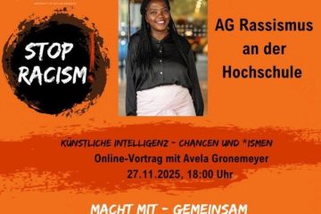 Am Donnerstag, 27. November, um 18 Uhr, lädt die AG Rassismus der Hochschule Osnabrück zum Online-Vortrag „Künstliche Intelligenz – Chancen und Ismen“ mit Avela Gronemeyer ein. Avela Gronemeyer (M.Sc. Wirtschaftsinformatik) ist Unternehmens- und Technologieberaterin sowie Solution Lead Smarter Greener Futures. Sie spricht über die Chancen und Herausforderungen künstlicher Intelligenz – Weiterlesen…